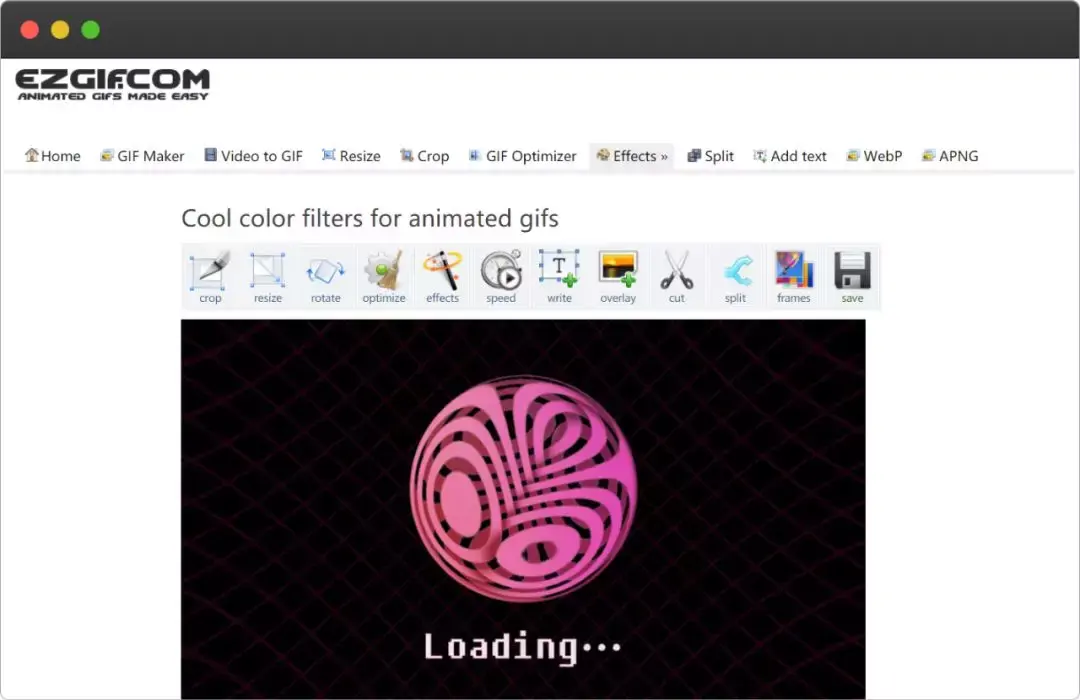 在EZGif的Effects(特效)页面,你还可以更改Gif图的颜色、为其添加滤镜等。