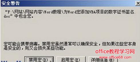 | 用户在使用Word编辑文档时可以借助Word宏命令提高工作效率。在默认情况下,Word宏的安全性设置为“高”,当运行Word宏命令时会自动禁用宏。如果将Word宏安全性设置为“中”,则每次运行Word宏会弹出Word宏安全警告对话框。而如果把Word宏的安全性设置为“低”来取消安全警告,则会增加恶意代码或病毒破坏的危险。为此,用户可以为Word宏添加VBA项目的数字证书签名,这样不仅可以取消Word宏安全警告,并且不会降低Word文档安全性。以Word2003为例,具体实现方法如下所述。 第2步,打开“Visual Basic 编辑器”窗口,在菜单栏中依次单击“插入”→“模块”菜单命令,如下图所示。 第3步,打开模块窗口,在窗口中输入三行代码: 第4步,保存并关闭当前的Word文件,然后再次打开该Word文件。这时将自动打开“安全警告”对话框,提示用户是否运行Word宏,如下图所示。 2.安装 VBA 项目的数字证书 第2步,打开“Microsoft Office 2003安装”向导,在“维护模式选项”对话框中选中“添加或删除功能”单选框,并单击“下一步”按钮,如下图所示。 |