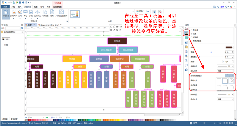 以上十个步骤,只是非常简单的绘制组织架构图的操作方法,如果你想了解更多技巧、方法,可以点击组织架构图使用技巧进行查看。