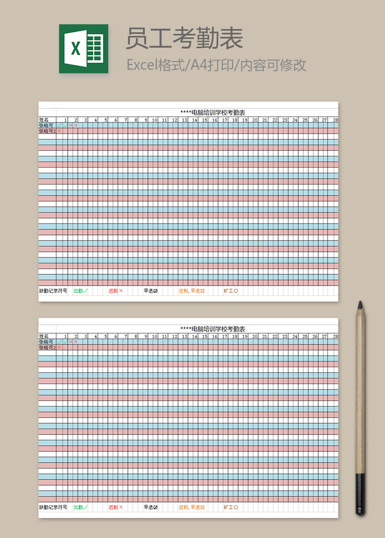 首页 > Excel表格 > 人力资源 > 考勤表模板 > 电脑培训学校考勤表