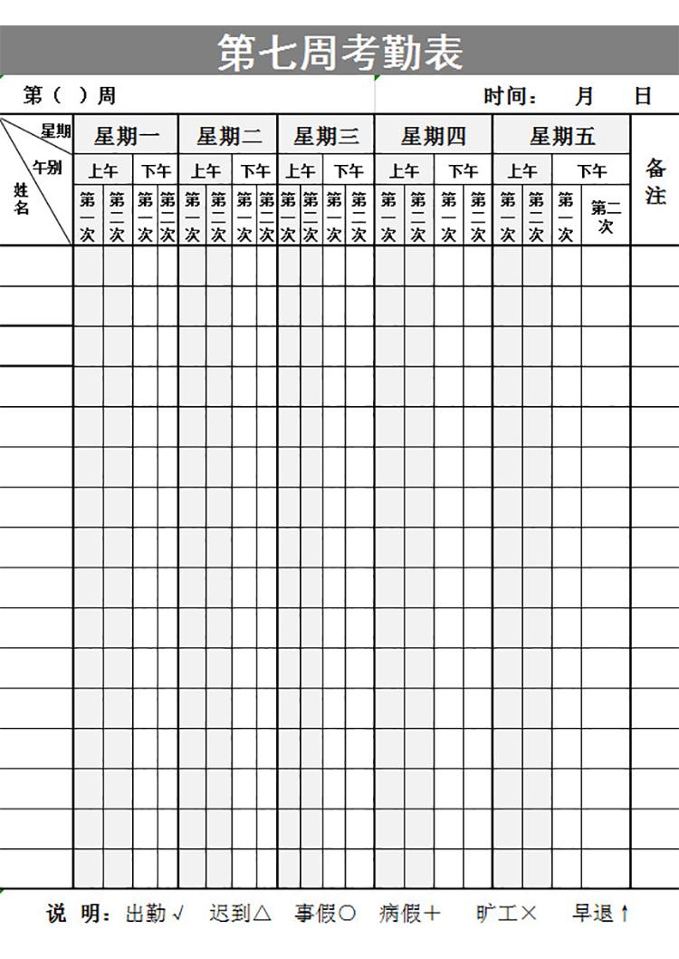 相关关键词: 公司员工考勤表,员工考勤表
