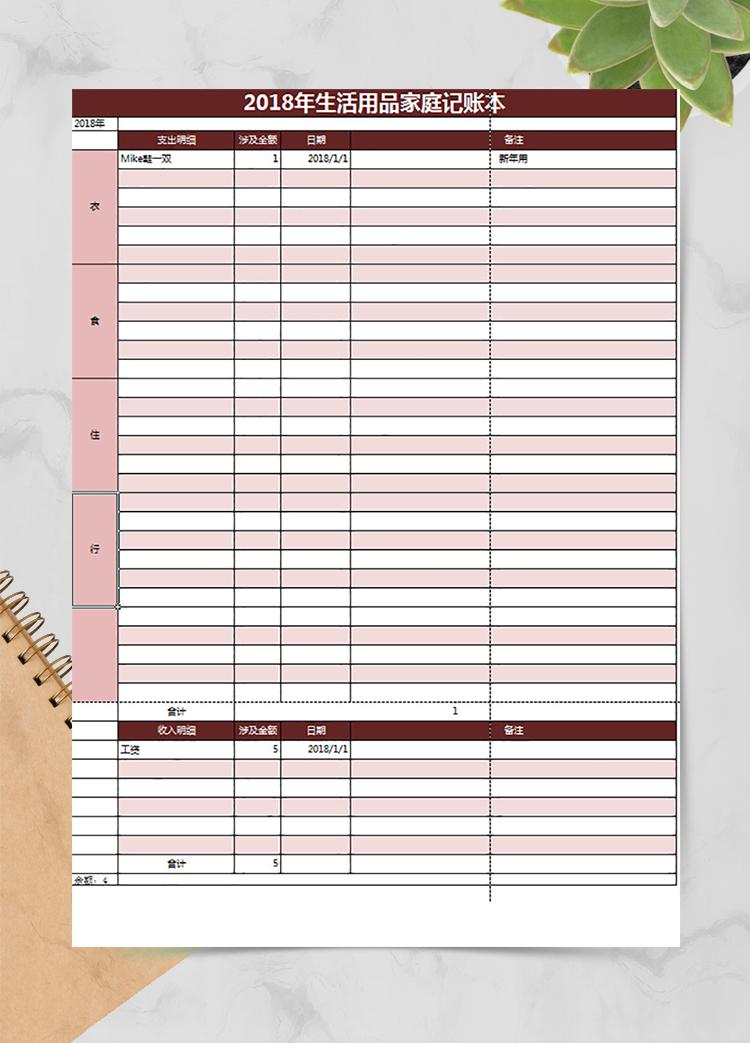 2019年生活用品家庭记账本 2019年生活用品家庭记账本-1