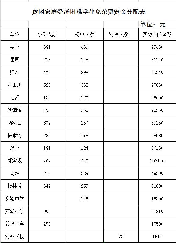 首页 > Excel表格 > 学校管理 > 学校资料 > 贫困家庭经济困难学生免杂费资金分配表