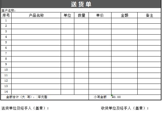 我拉网提供个性化物品送货单Excel模板下载,模板编号为1907103,大小为16.36KB,