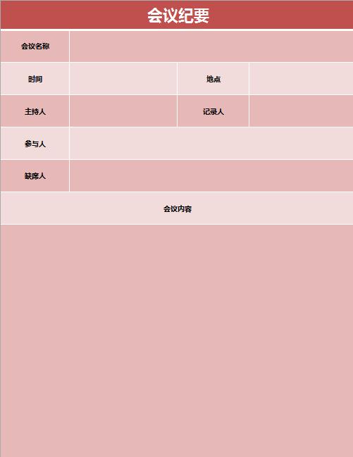 首页 > Excel表格 > 行政管理 > 粉色系会议纪要excel表格模板
