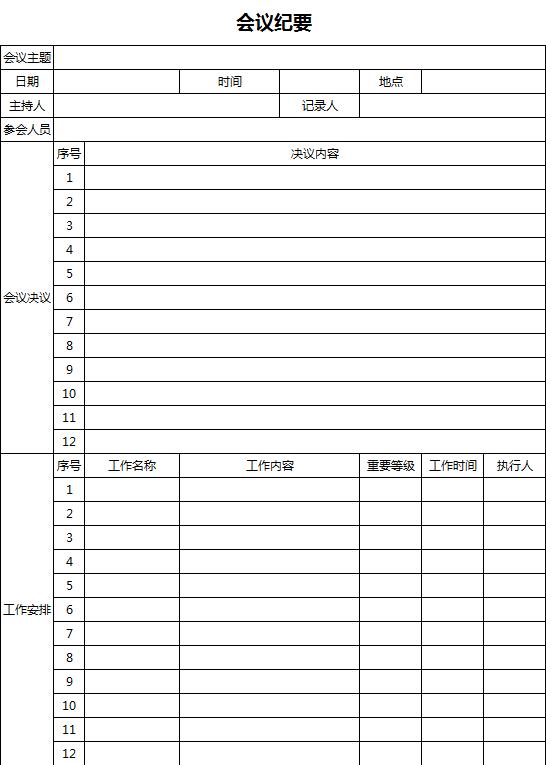 首页 > Excel表格 > 行政管理 > 会议纪要会议记录Excel表格模板