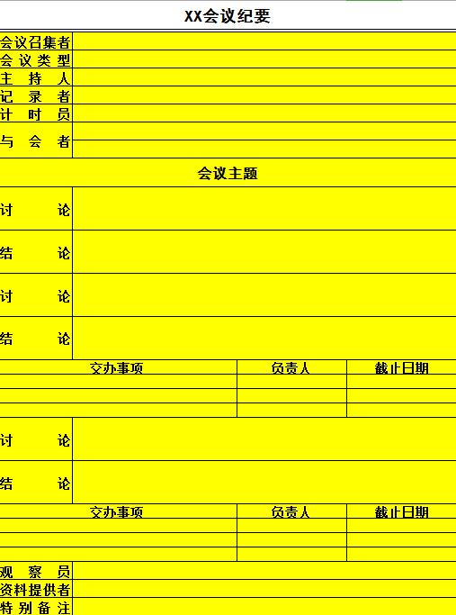我拉网提供个性化亮黄色专业会议纪要excel表格模板下载,模板编号为1911554,大小为76KB,