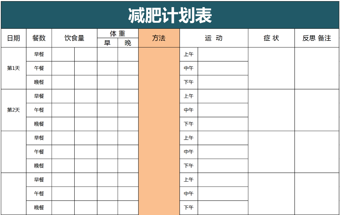 声明:每日减肥健身计划表excel模板来自用户分享,仅限学习交流请勿用于商业用途。如损害你的权益请联系客服给予处理。