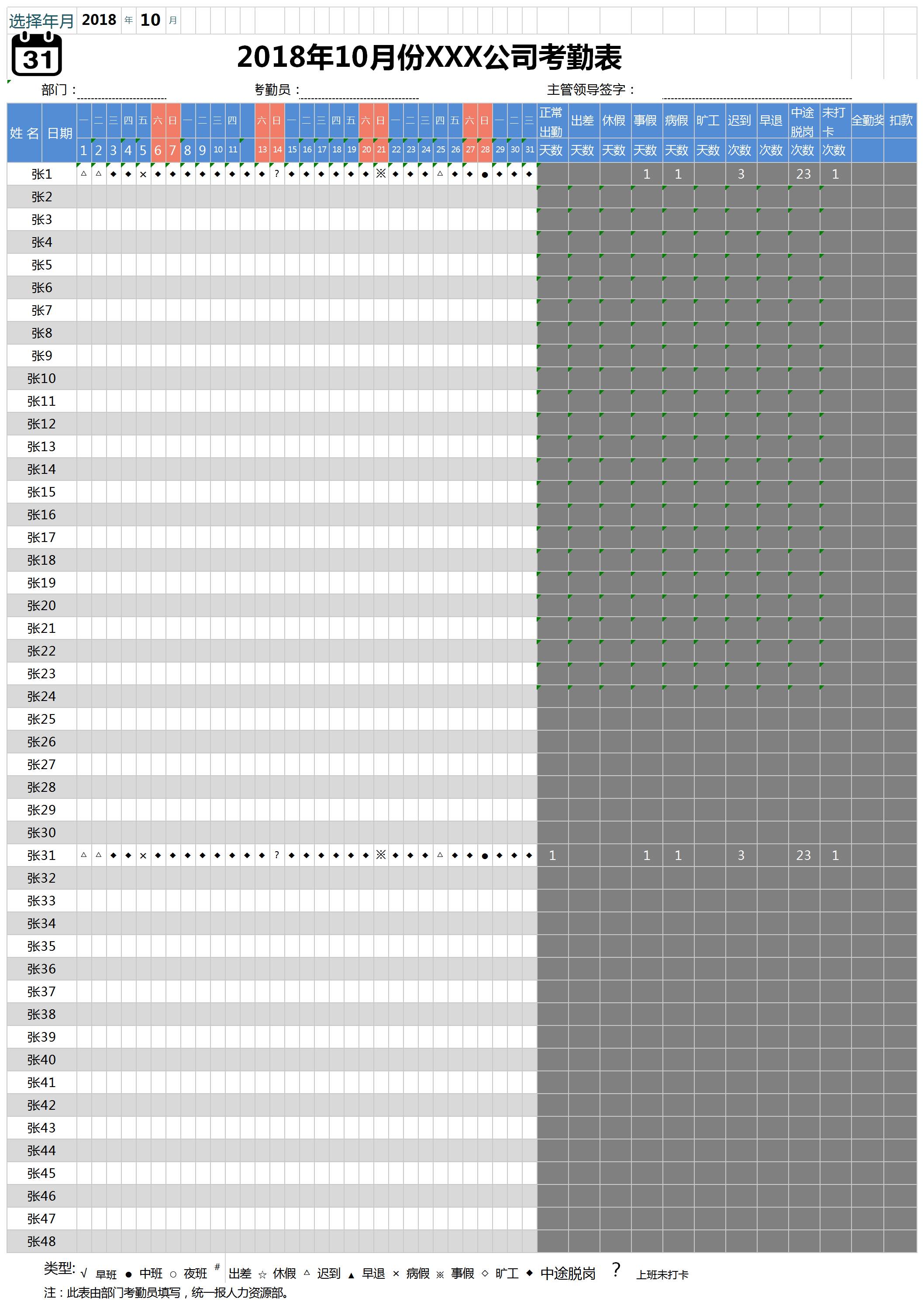 相关关键词: 考勤汇总表,考勤月度汇总表