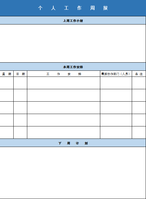 我拉网提供个性化个人工作周报excel模板下载,模板编号为2079328,大小为9.47KB,
