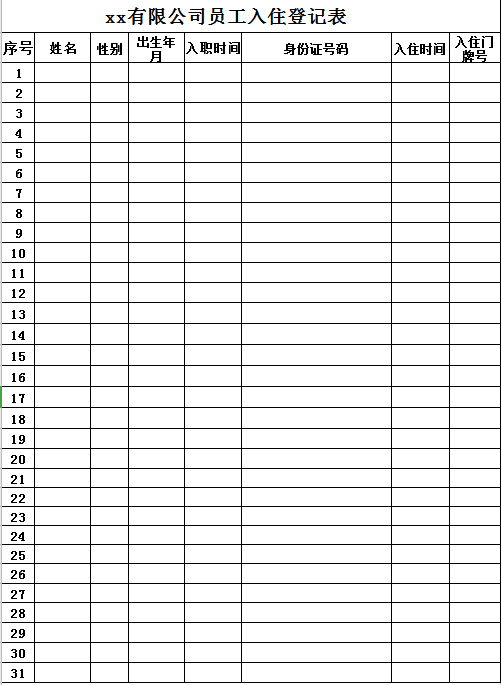 属于员工入住登记表excel模板高清模板,作品模板源文件下载后可用编辑替换,模板中如有人物画像仅供参考禁止商用。