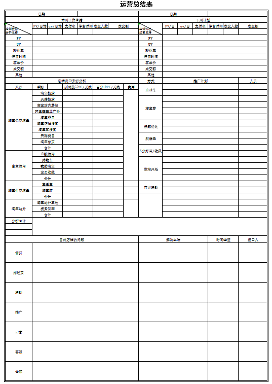 网店运营周总结报表excel模板