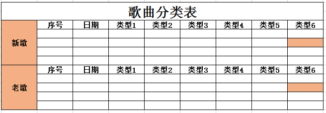 属于歌曲分类表2 excel模板高清模板,作品模板源文件下载后可用编辑替换,模板中如有人物画像仅供参考禁止商用。