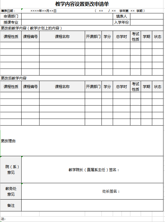 我拉网提供个性化教学内容设置更改申请单excel模板下载,模板编号为2082302,大小为13.06KB,