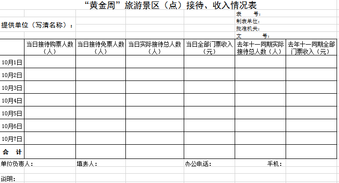 “黄金周”旅游景区收入情况表excel模板