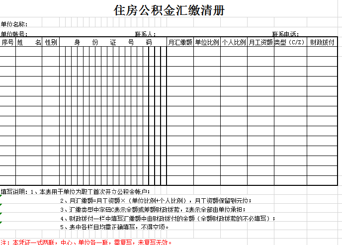 我拉网提供个性化住房公积金汇缴清册excel模板下载,模板编号为2082952,大小为264.5KB,