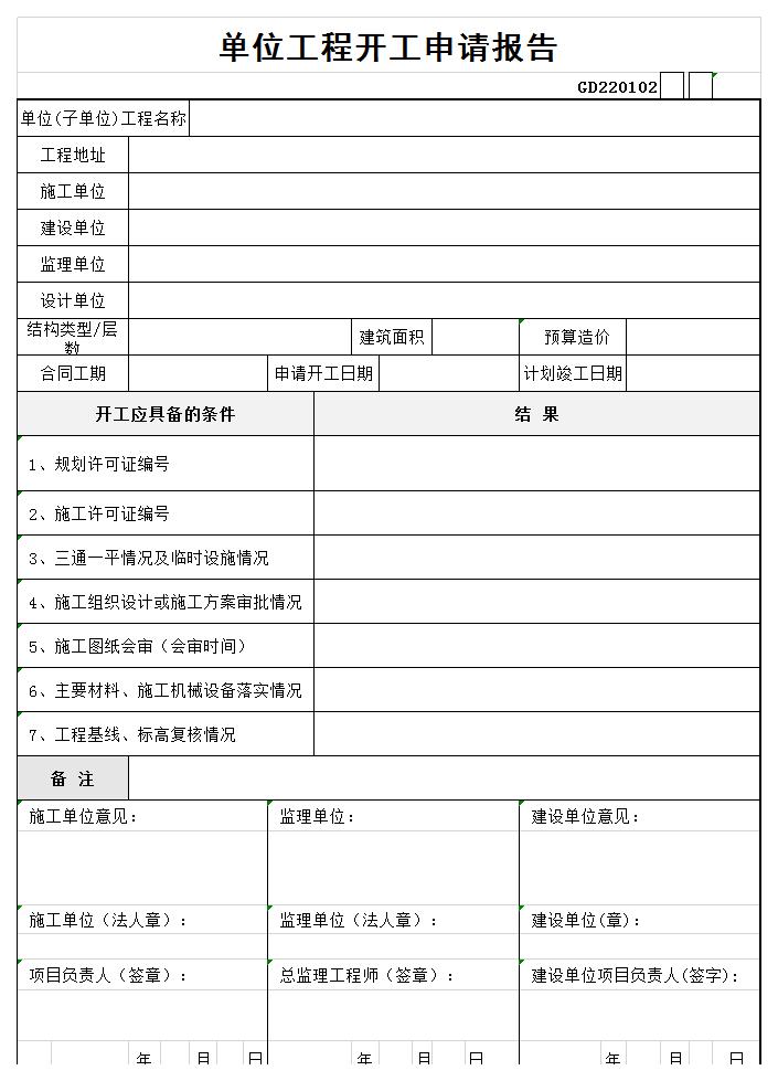 我拉网提供个性化单位工程开工申请报告excel模板下载,模板编号为2090460,大小为,