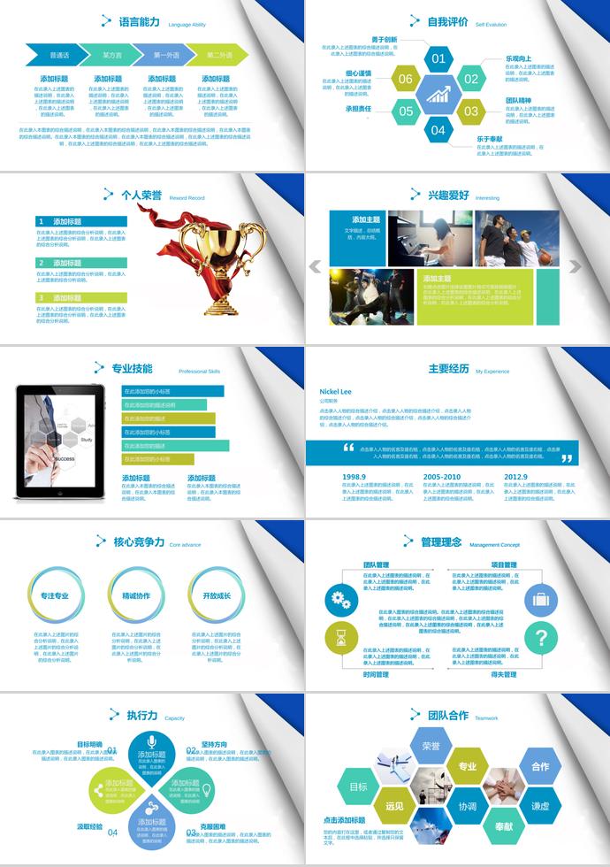 我拉网提供个性化淡蓝色销售经理个人求职简历ppt模板下载,模板编号为1888384,大小为6.08MB, 作品在2019-07-01上传到我拉网,作品高清大图模板,格式为pptx, 属于竞聘求职高清模板,作品模板源文件下载后可用编辑替换,模板中如有人物画像仅供参考禁止商用。