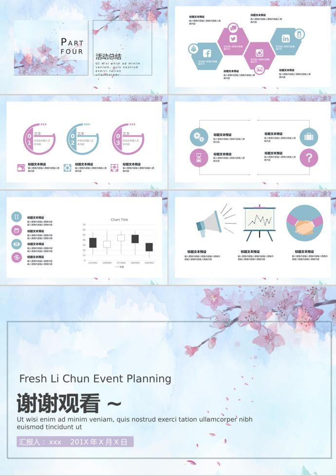 我拉网提供个性化天蓝色花卉风格清新立春活动策划PPT模板下载,模板编号为1888724,大小为4.49MB,