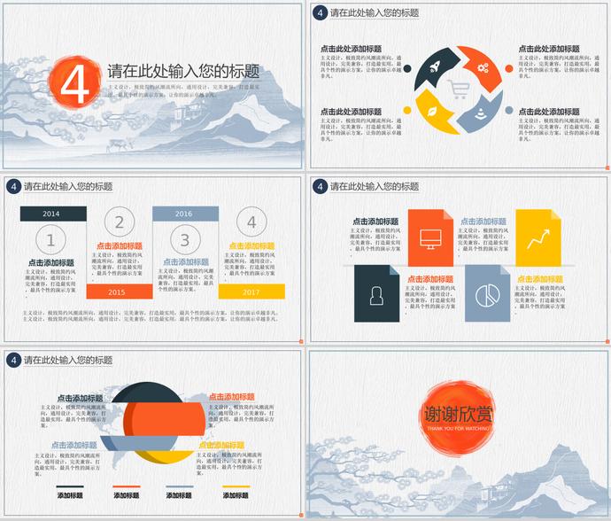 首页 > PPT模板 > 节日庆典 > 清明节 > 浅色系山水画清明节ppt模板