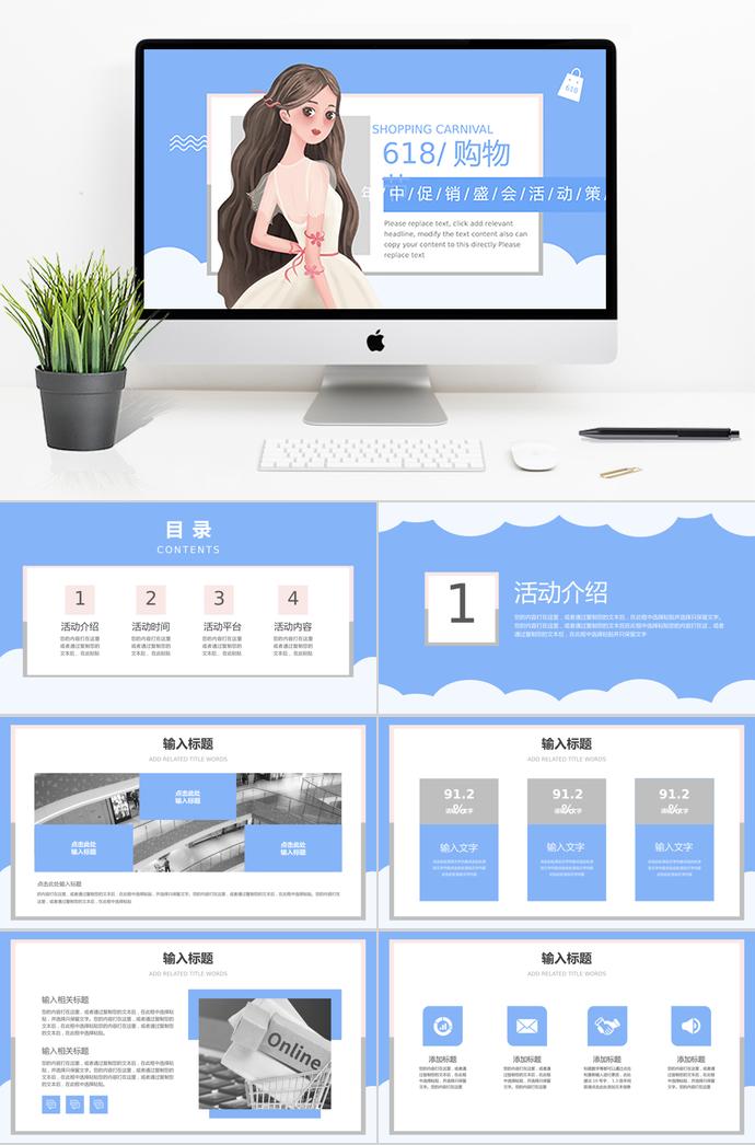 声明:天蓝色精美风618年中促销活动PPT模板来自用户分享,仅限学习交流请勿用于商业用途。如损害你的权益请联系客服给予处理。