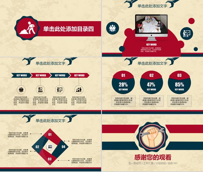 声明:创意五一劳动节工作汇报总结PPT模板来自用户分享,仅限学习交流请勿用于商业用途。如损害你的权益请联系客服给予处理。