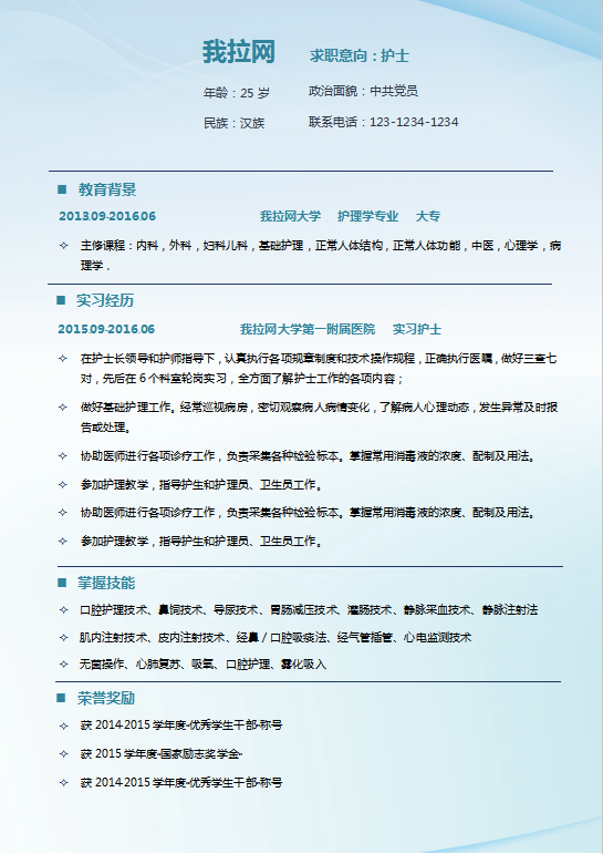 我拉网提供个性化天使翅膀护士简历word模板下载,模板编号为2079144,大小为1.78MB,