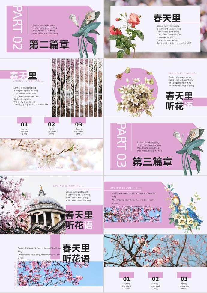 春天里听花语PPT模板 春天里听花语PPT模板-1 春天里听花语PPT模板-2
