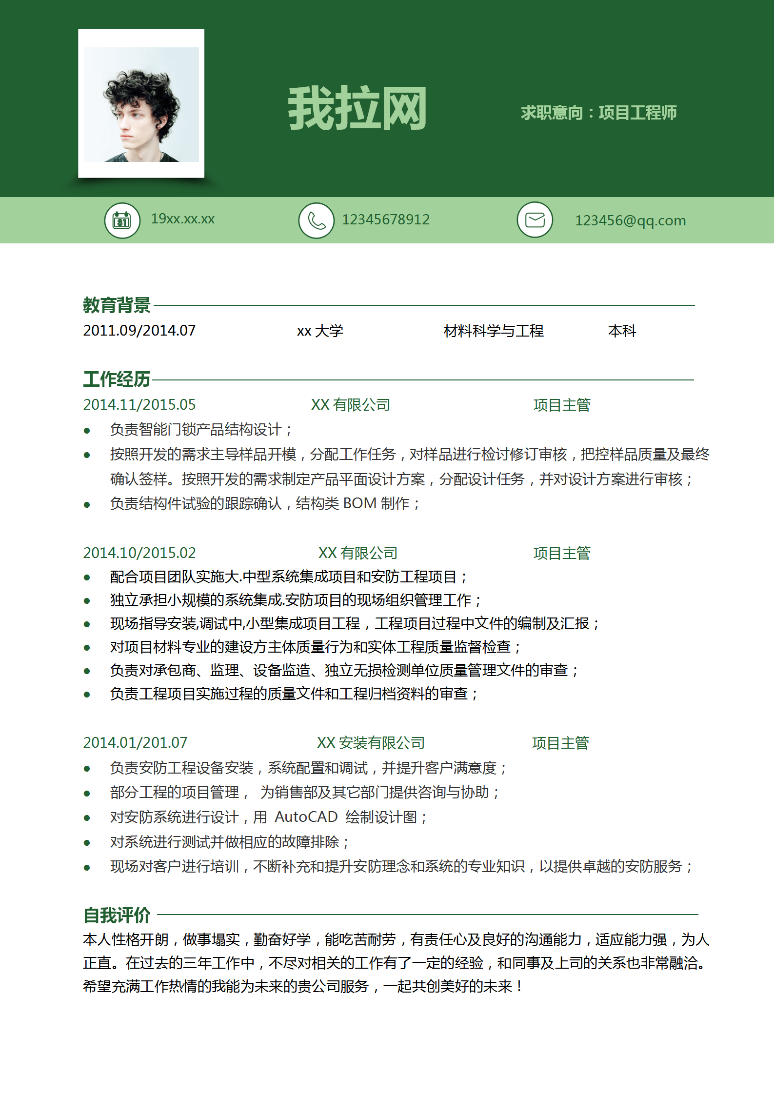 我拉网提供个性化三年经验项目主管简历套装下载,模板编号为1925929,大小为2.89MB,