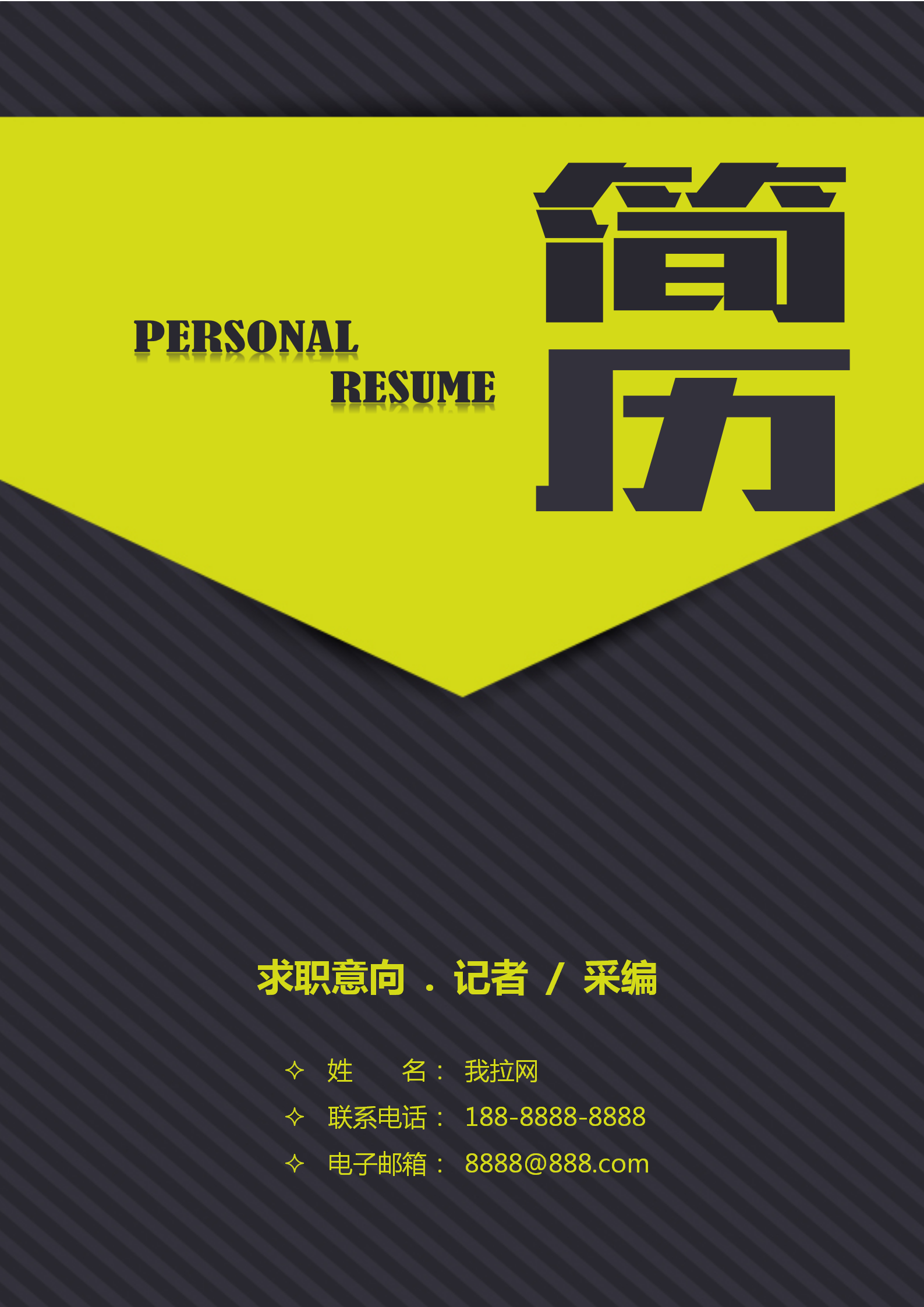 我拉网提供个性化记者采编自荐信求职简历模板下载,模板编号为1926214,大小为, 作品在2019-10-28上传到我拉网,作品高清大图模板,格式为, 属于编辑简历高清模板,作品模板源文件下载后可用编辑替换,模板中如有人物画像仅供参考禁止商用。