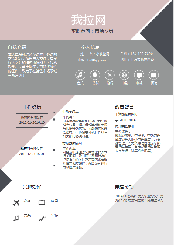 我拉网提供个性化创意方块市场专员跳槽求职简历word模板下载,模板编号为2079422,大小为189.83KB,