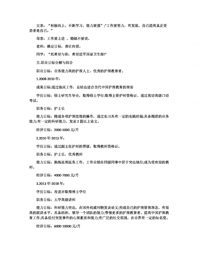 护理职业生涯规划书范文护理职业生涯规划书范文免费下载