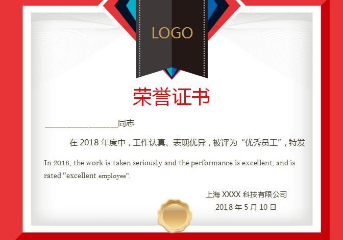 我拉网提供个性化红黑荣誉证书Word模板下载,模板编号为1905885,大小为717.5KB,