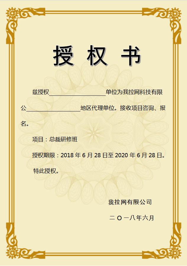 我拉网提供个性化金黄授权书Word模板下载,模板编号为1905919,大小为316.52KB,