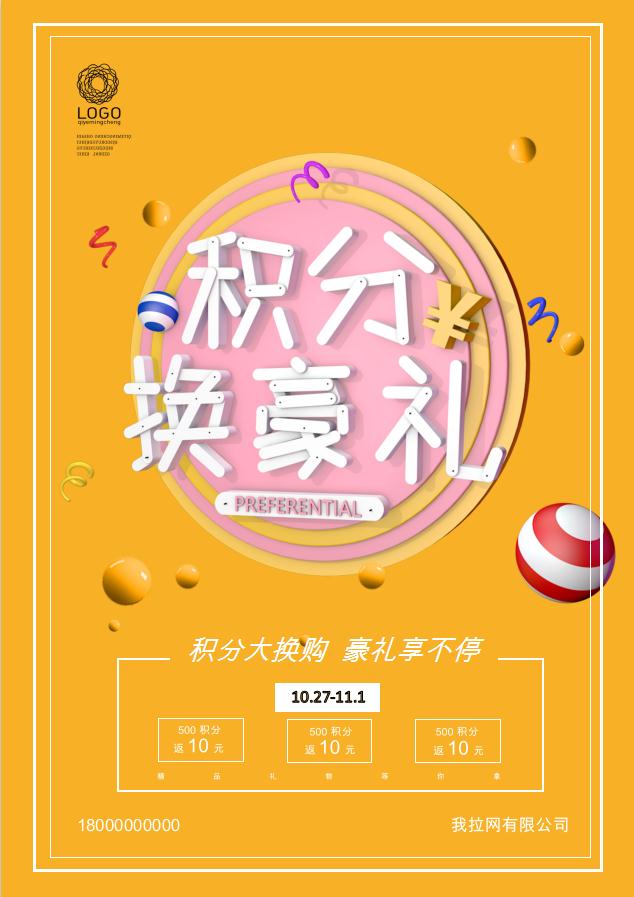 我拉网提供个性化积分换豪礼促销海报Word模板下载,模板编号为1906423,大小为7.3MB,