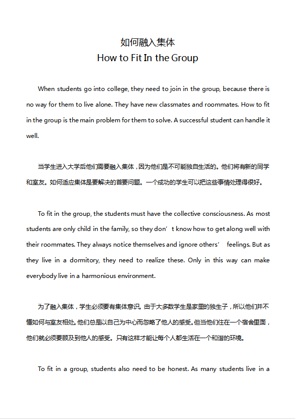 我拉网提供个性化英语四级作文:如何融入集体下载,模板编号为1917354,大小为13.51KB,