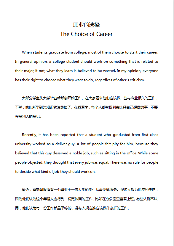英语四级作文:职业的选择