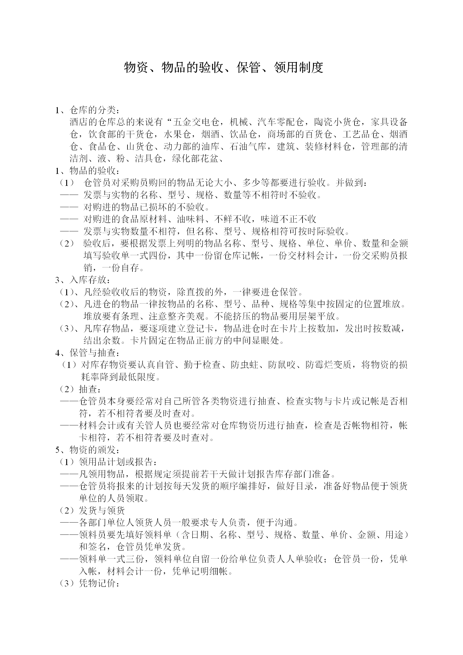 (1)、凡经验收收后的物资,除直拨的外,一律要进仓保管。