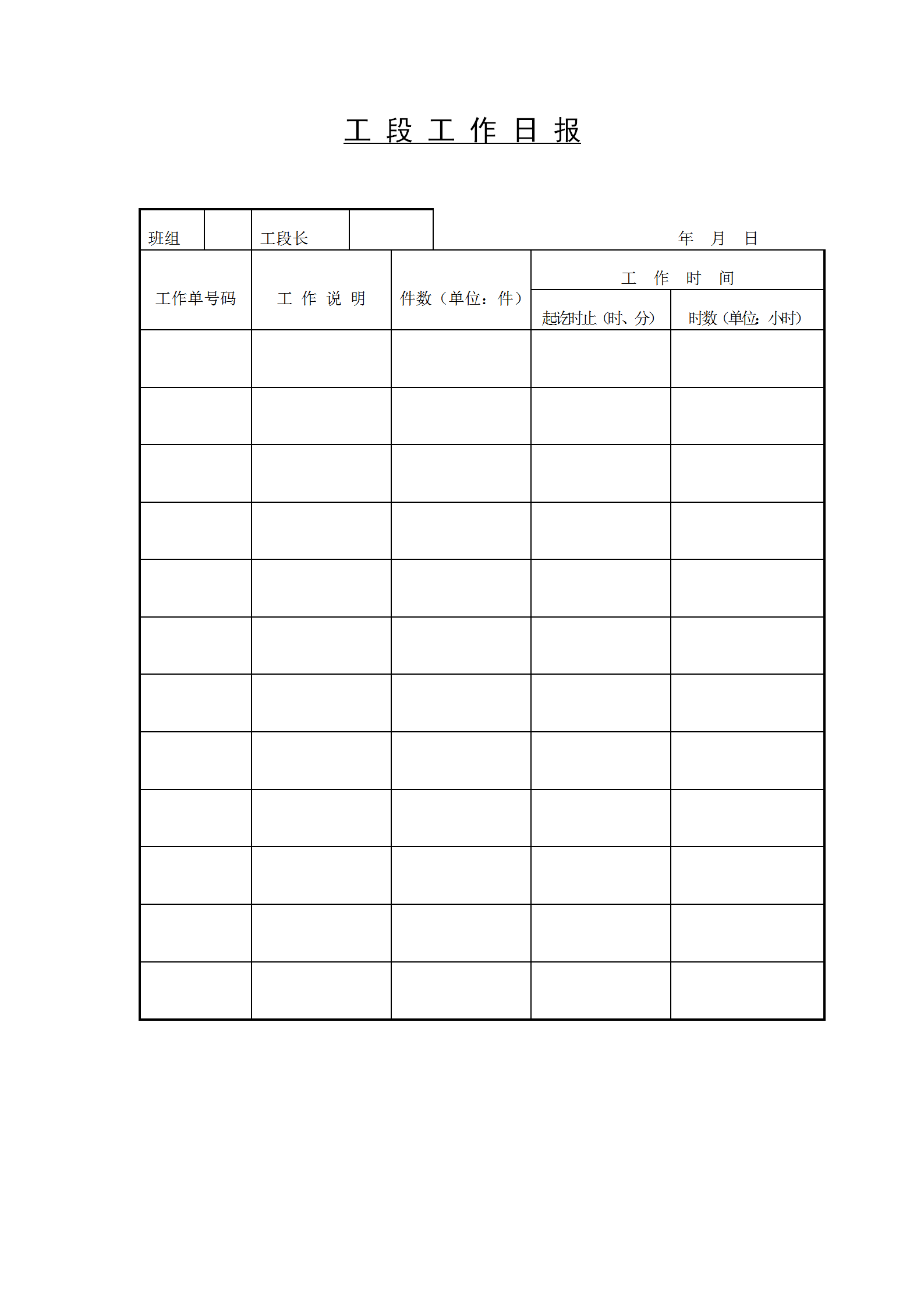 工厂工段工作日报word模板