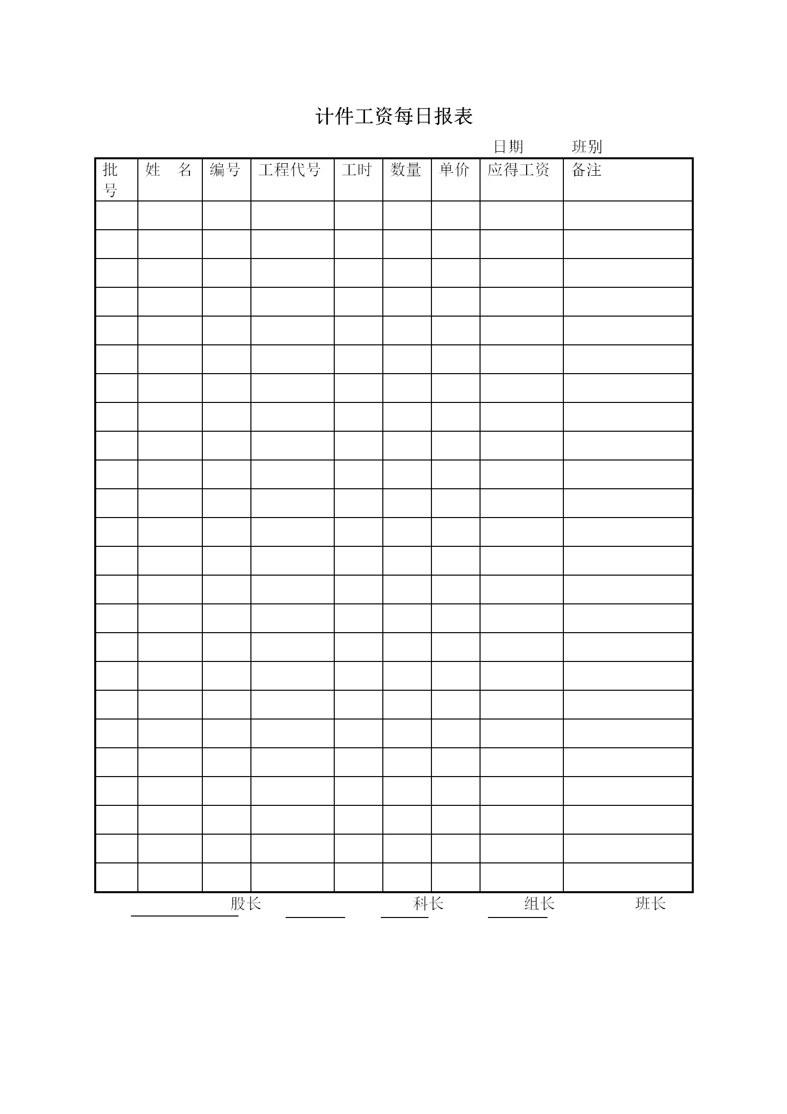 我拉网提供个性化计件工资每日统计报表word模板下载,模板编号为2038023,大小为40KB,