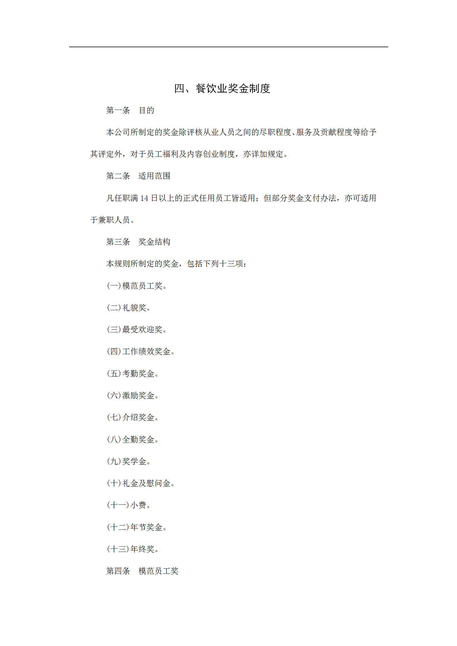 本规则所制定的奖金,包括下列十三项: