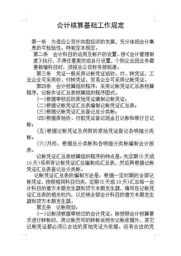 会计核算基础工作规定Word模板