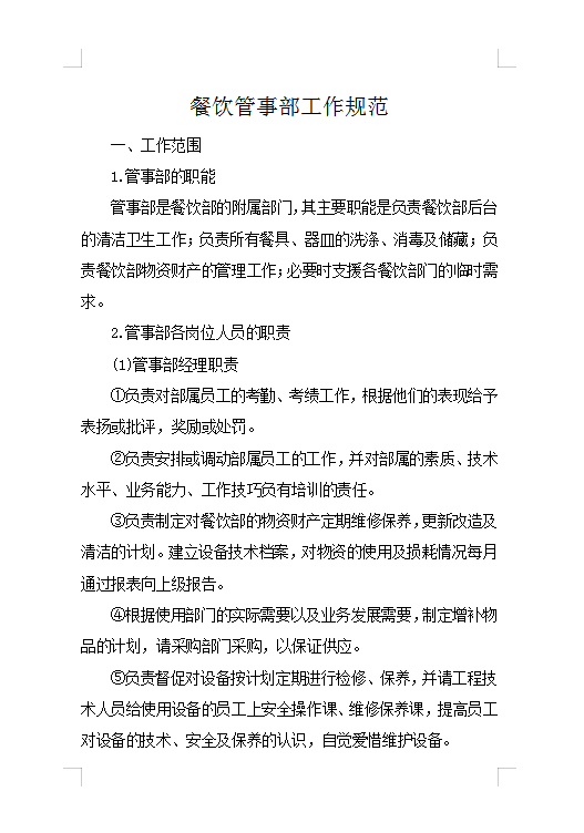 声明:餐饮管事部工作规范Word模板来自用户分享,仅限学习交流请勿用于商业用途。如损害你的权益请联系客服给予处理。