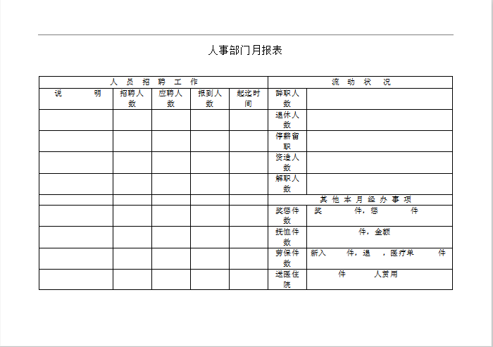 首页 > Word模板 > 规则制度 > 人事部门月报表word模板