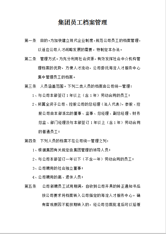 集团员工档案管理word模板