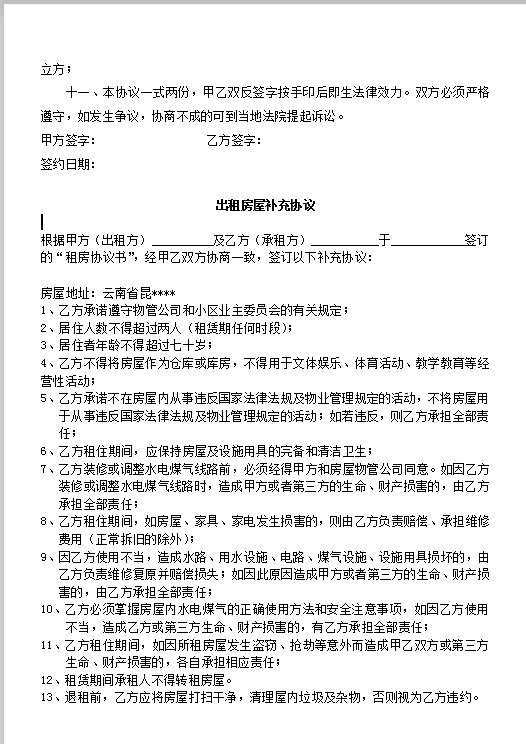 声明:租房协议书Word模板来自用户分享,仅限学习交流请勿用于商业用途。如损害你的权益请联系客服给予处理。