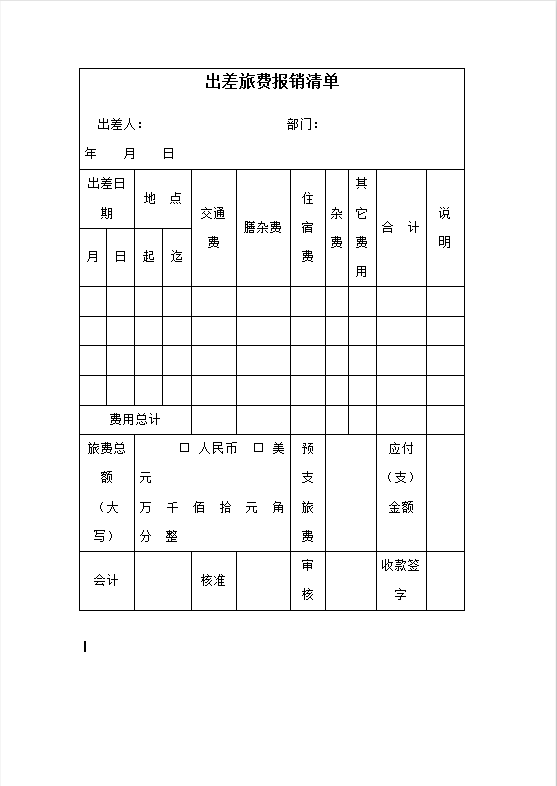 首页 > Word模板 > 行政管理 > 出差旅费报销清单Word模板