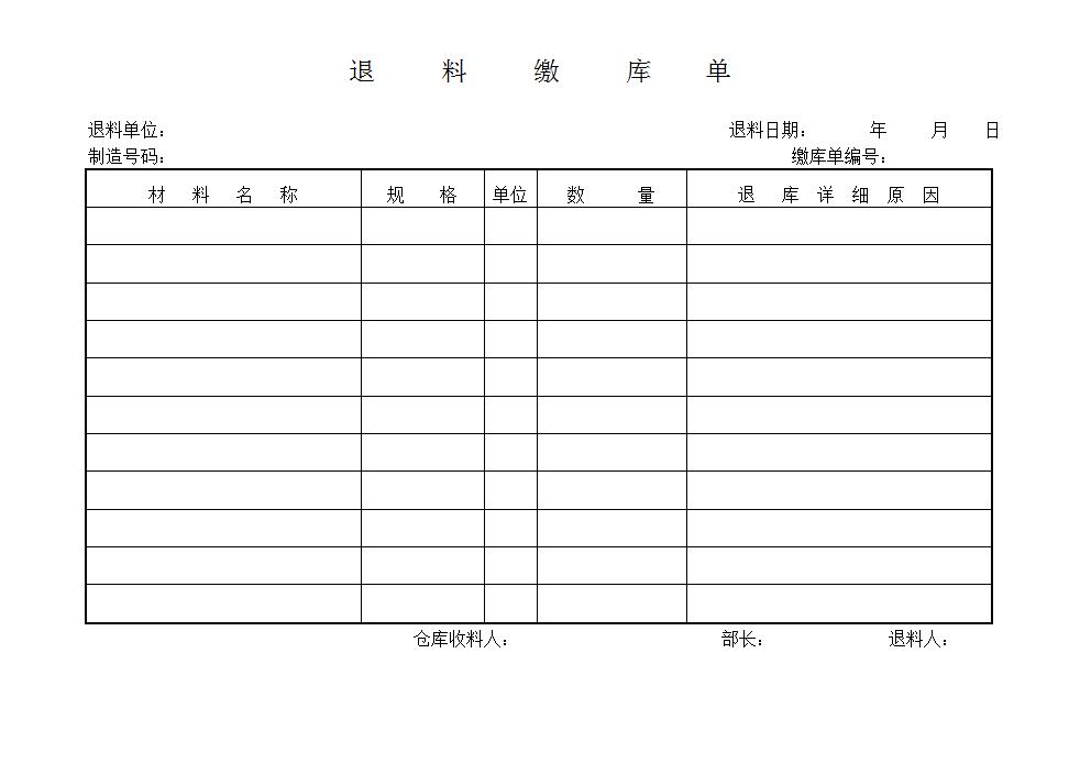 首页 > Word模板 > 统计报表文档 > 退料缴库单Word模板