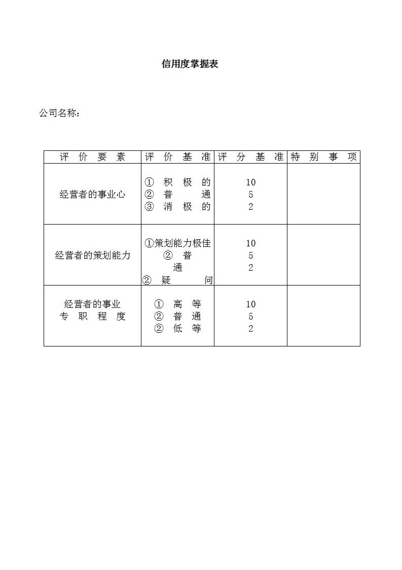 属于信用度掌握表Word模板高清模板,作品模板源文件下载后可用编辑替换,模板中如有人物画像仅供参考禁止商用。