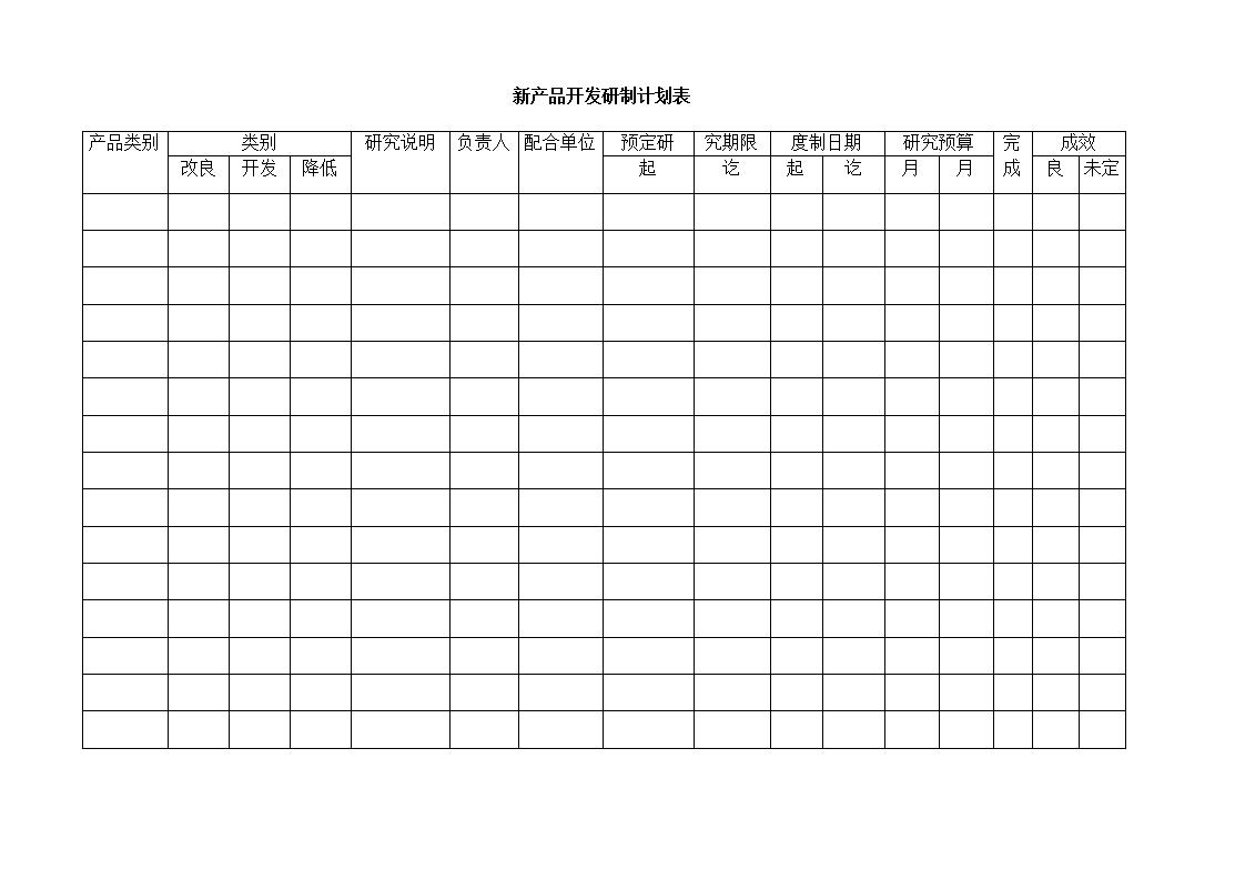 我拉网提供个性化新产品开发研制计划表word模板下载,模板编号为2090294,大小为,